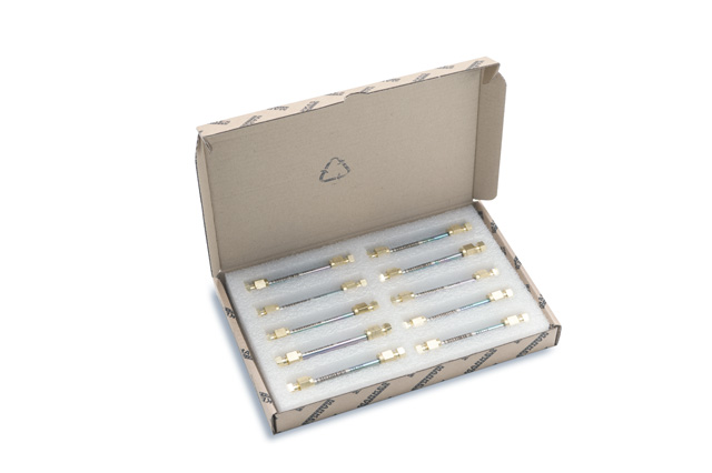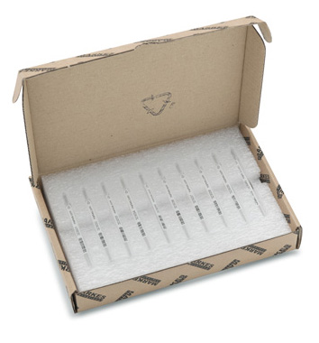 玛珂思国际提供两种类型的轻巧、坚固的纸板储存箱,便于3½英寸不锈钢或玻璃吸附管邮寄: