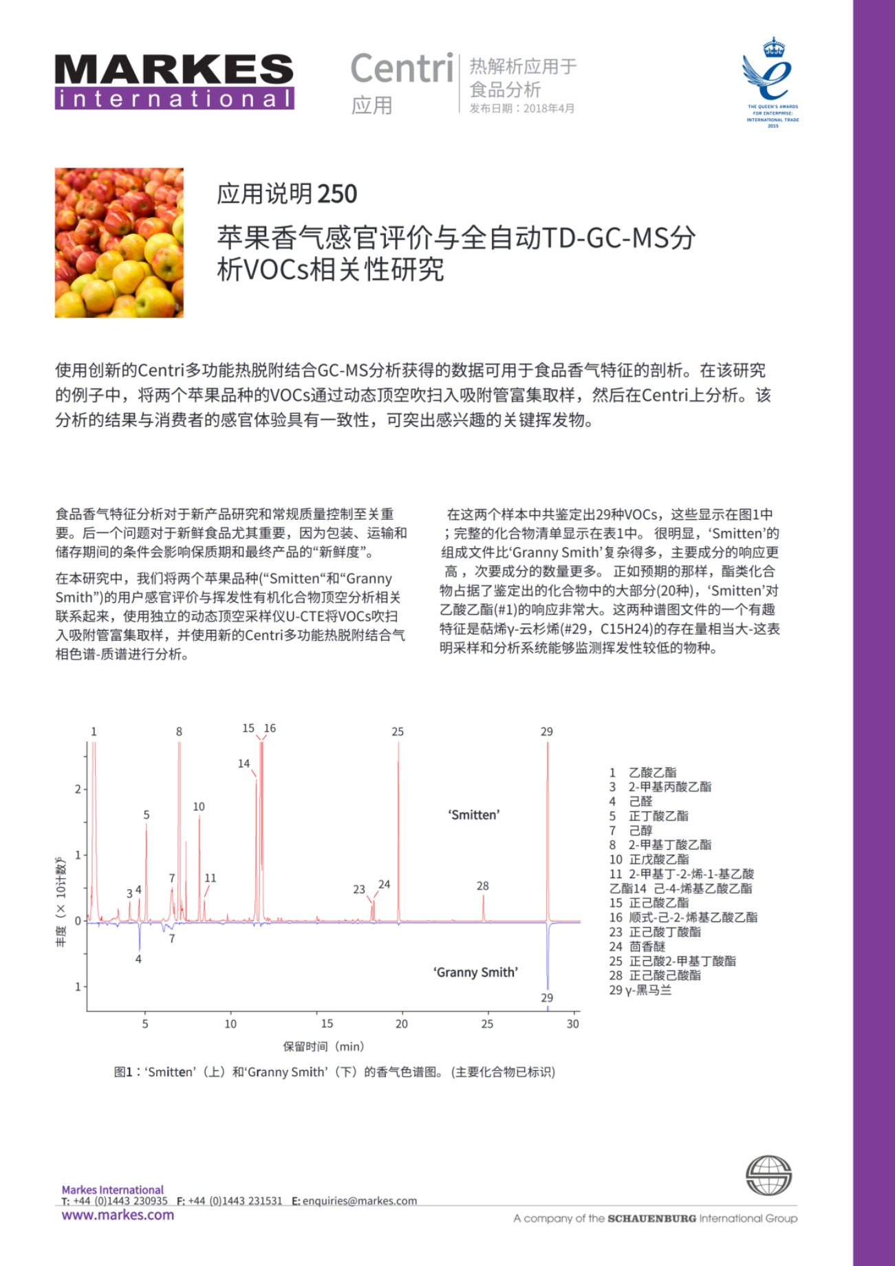 250号说明 苹果香气感官评价与全自动TD-GC-MS分析VOCs相关性研究