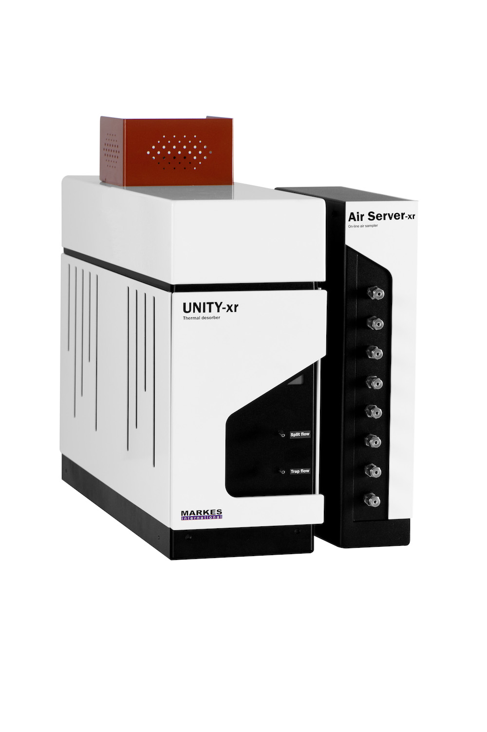 Air Server-xr™ 形状细高,可以将一定量空气/气体采集到 UNITY-xr 热脱附仪的聚焦冷阱上,从而实现空气的在线自动进样。